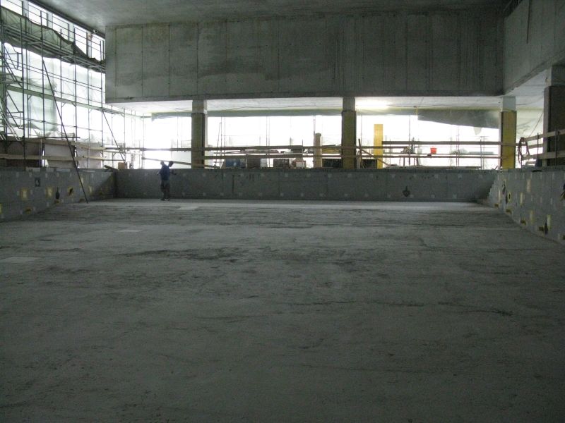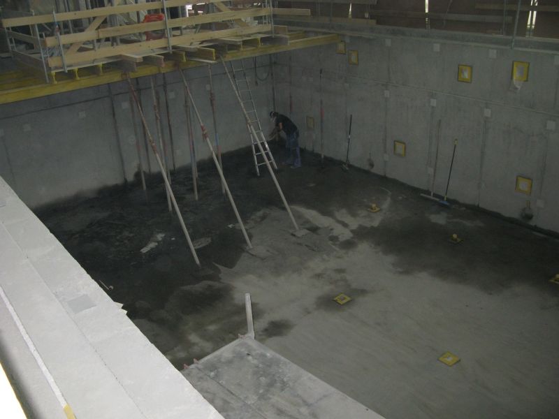 Bestrahlte Objekte: Schwimmbecken, Boden, Betonwände Eingesetzte Strahlverfahren: Sandstrahlen (grobe Schlacke)