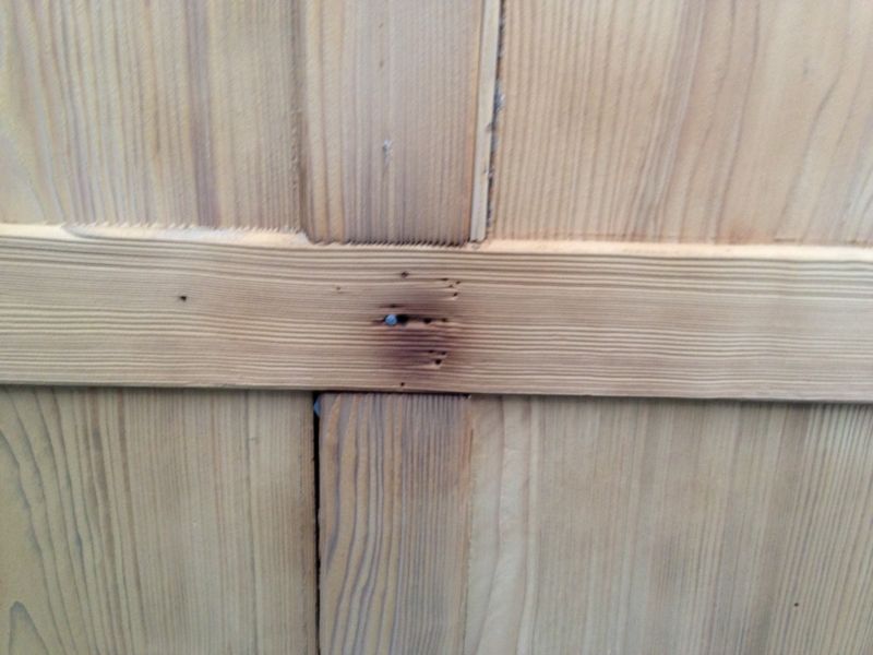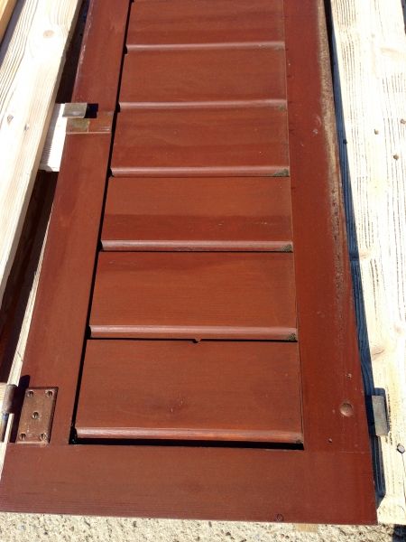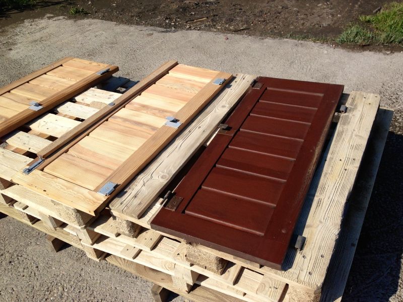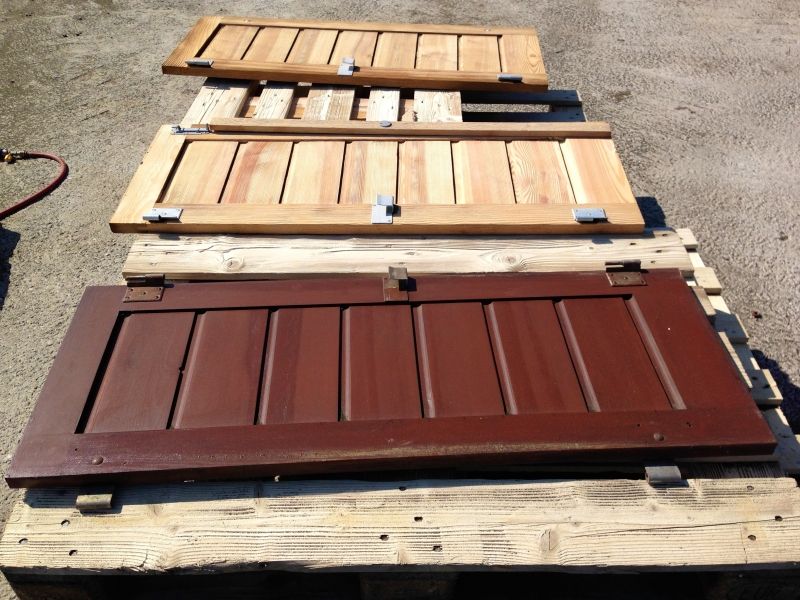 Bestrahlte Objekte: Fensterläden Eingesetzte Strahlverfahren: Sandstrahlen (feine Schlacke)